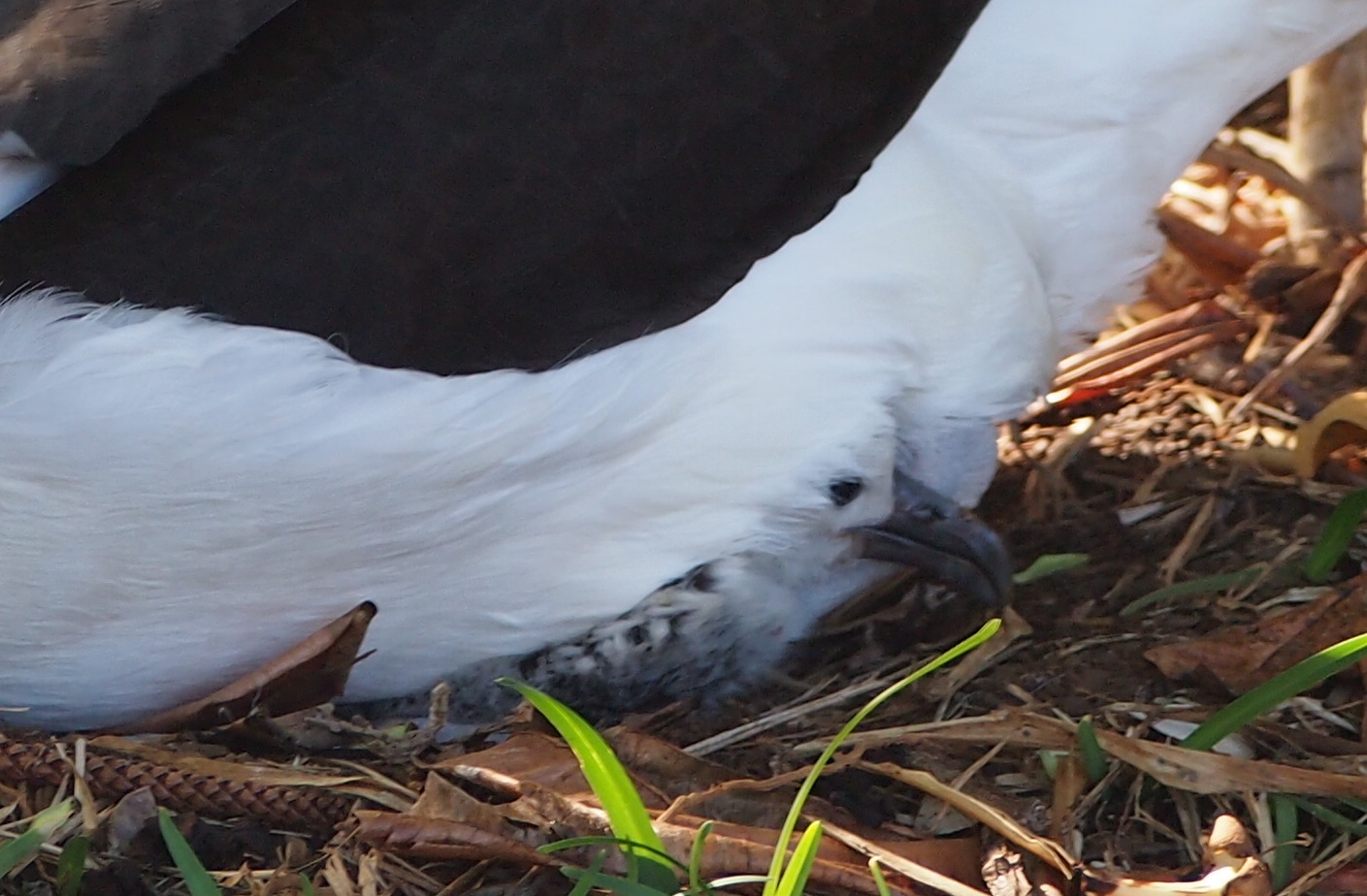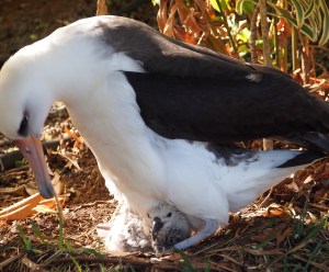 I have seen albatrosses abandon their eggs but I have never seen one refuse to take care of a chick.  There is something about a baby that is irresistible to an albatross.  When a parent comes home to the nest and the chick has hatched or is in the process of pipping out of the egg, the nester often refuses to budge, eventually doing so only after unrelenting prodding from the returning parent.
