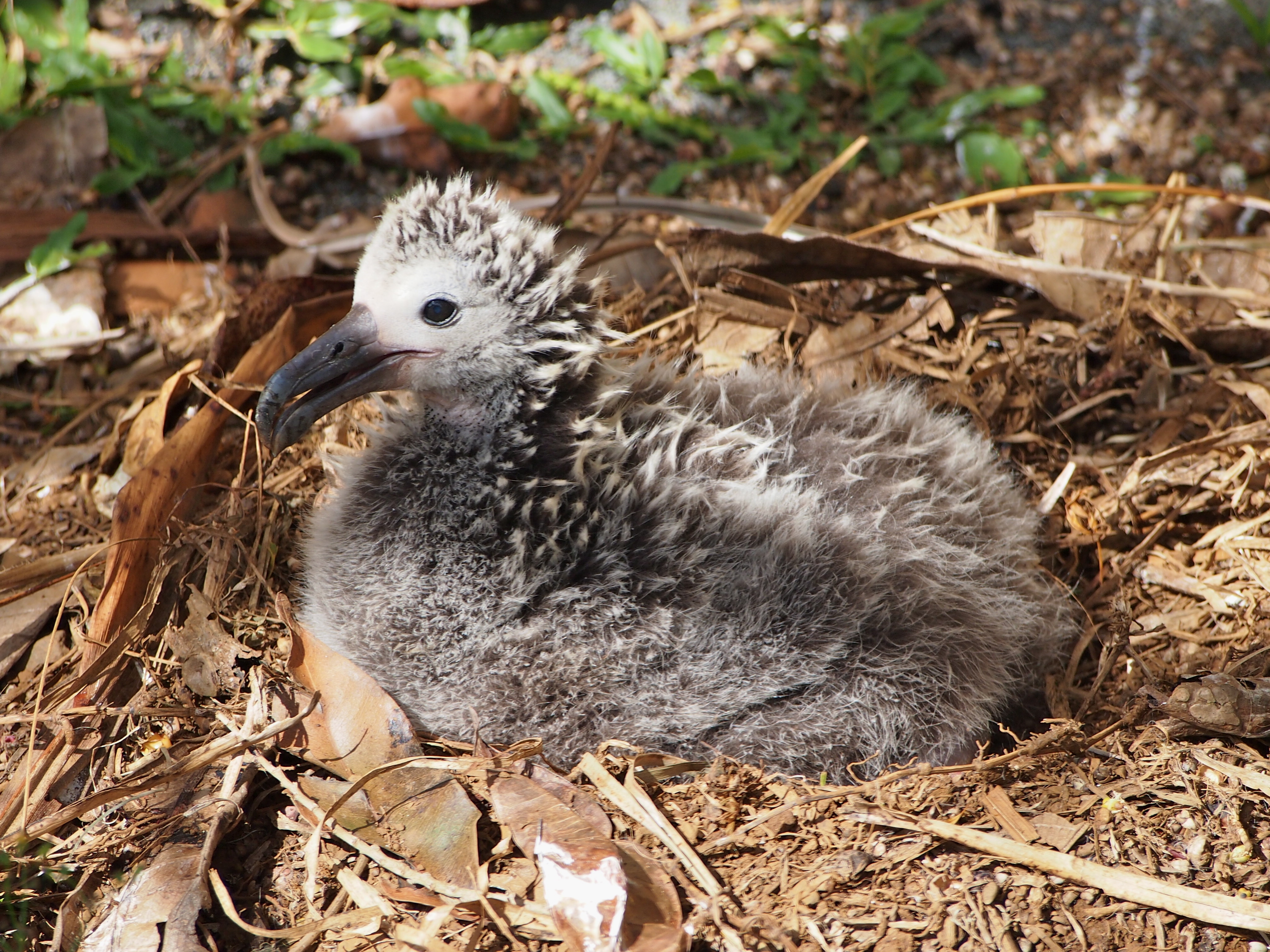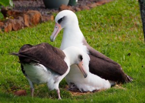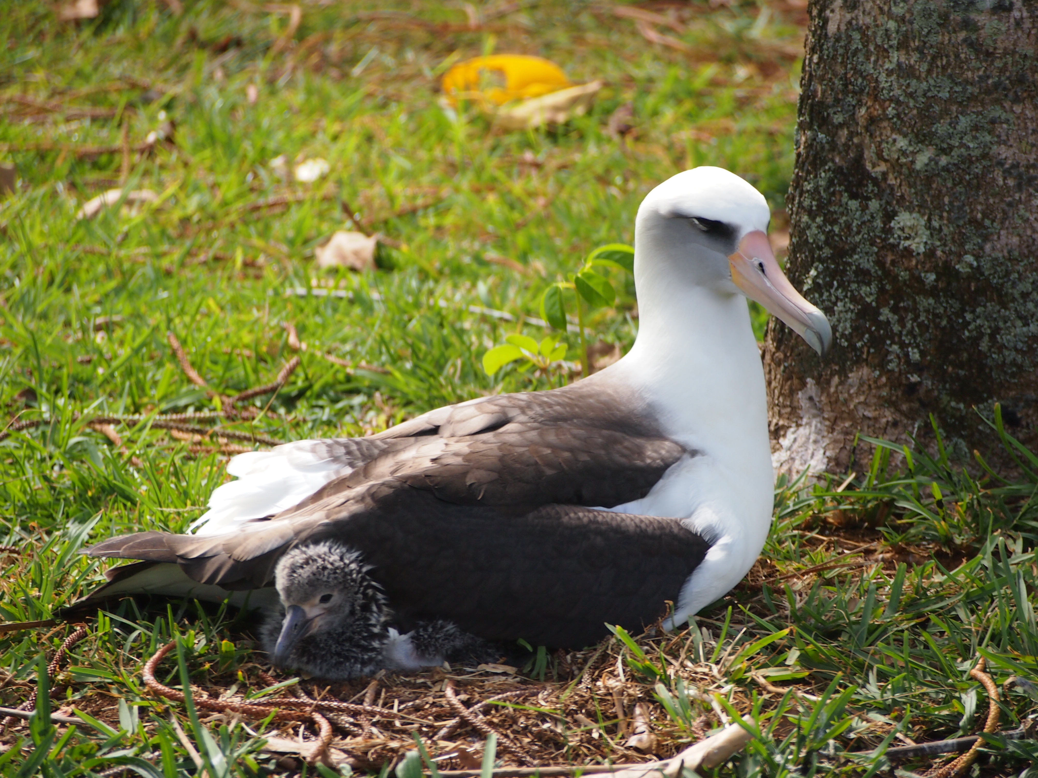I didn’t even try to take a photo; when the chick first hatches the parents are at their most protective, for obvious reasons. I can usually tell when a chick has just hatched by the parent’s behavior; they stay firmly in place and clack their bills at me if I get too close. The tiny little things are so vulnerable and helpless, and I have no interest in upsetting an albatross parent to take a picture.