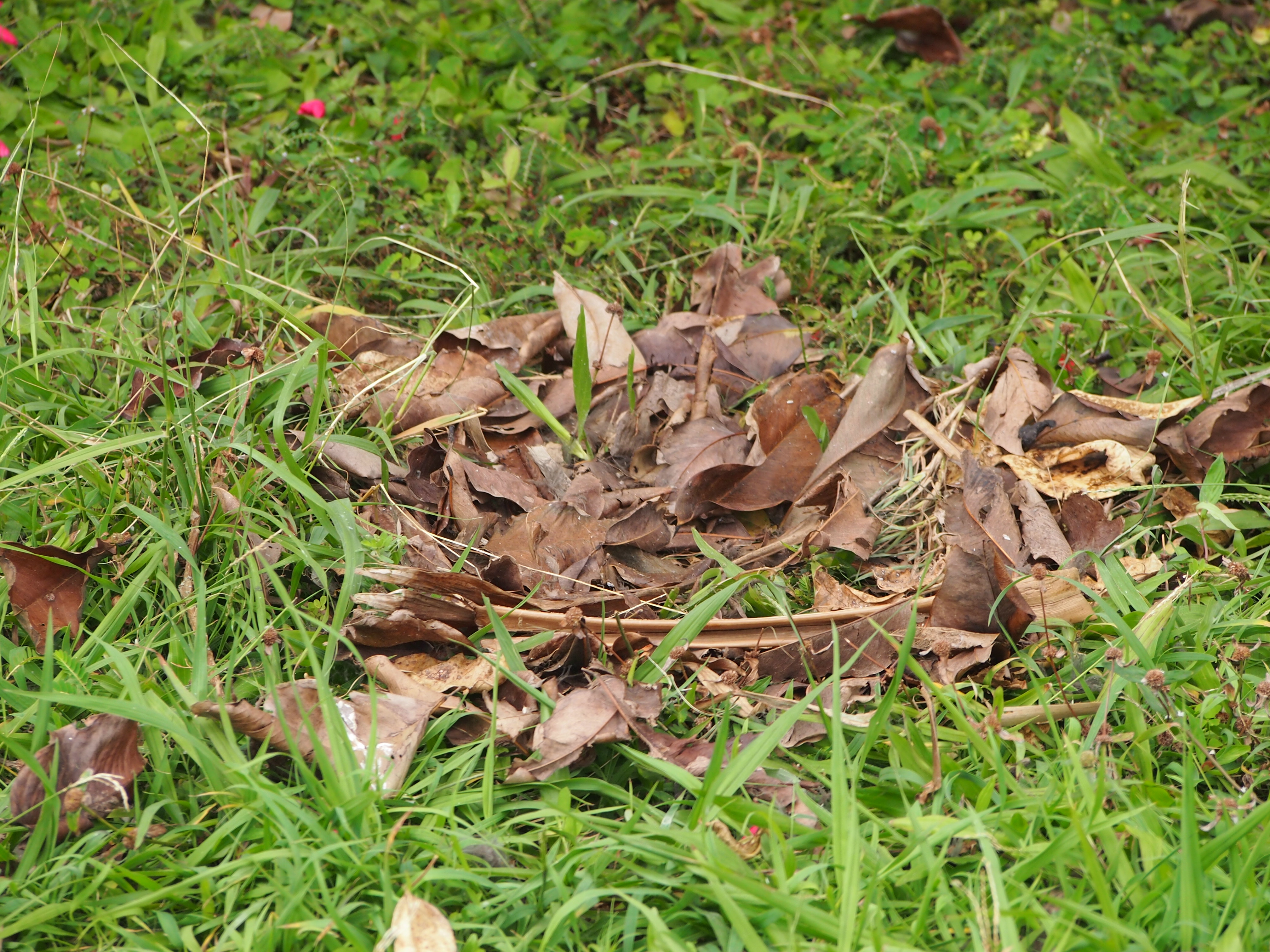 At first he found lots of mown, dead brown grass in the area: