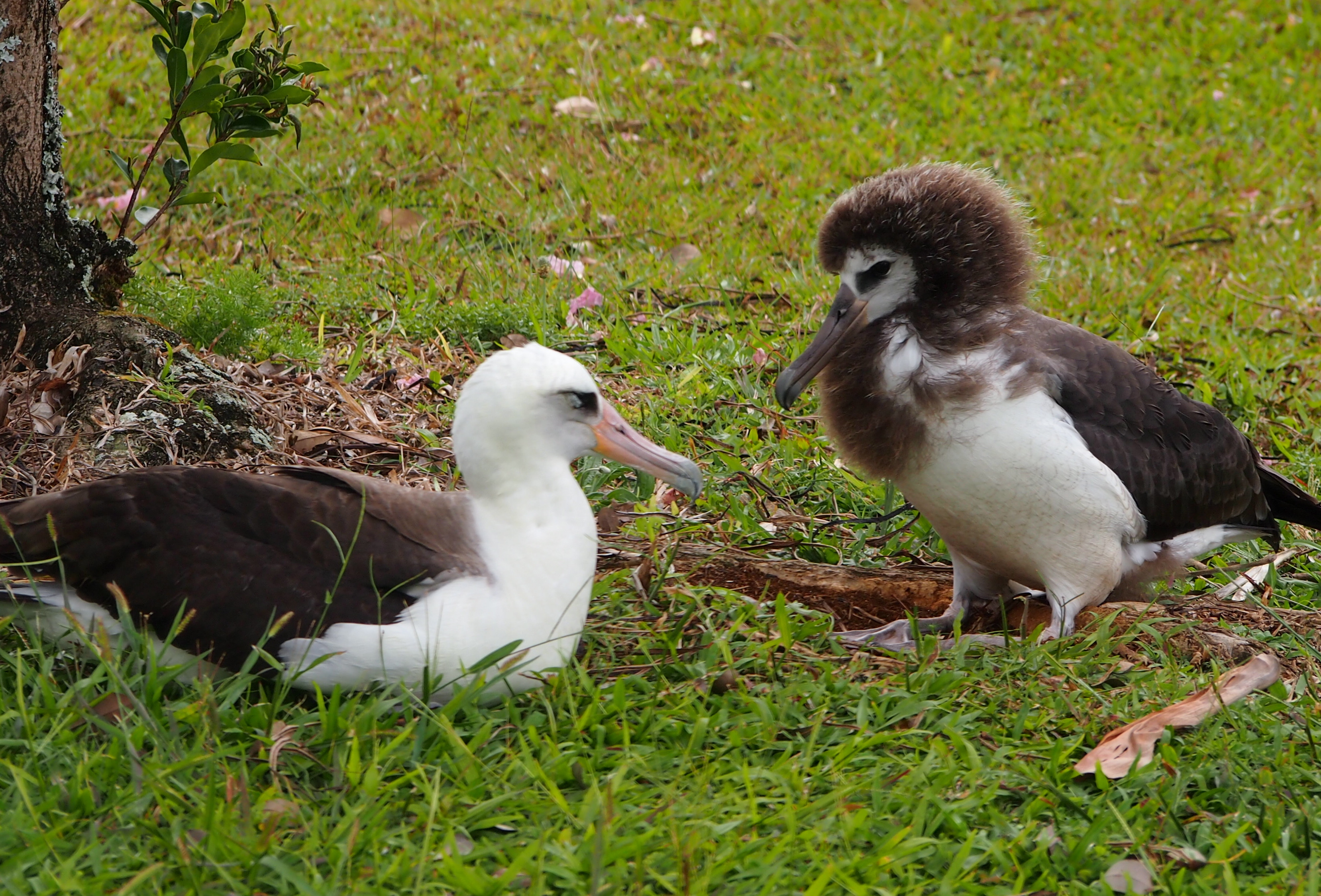 This is “Scotty,” the last bird to be banded in Princeville, sitting next to his father: