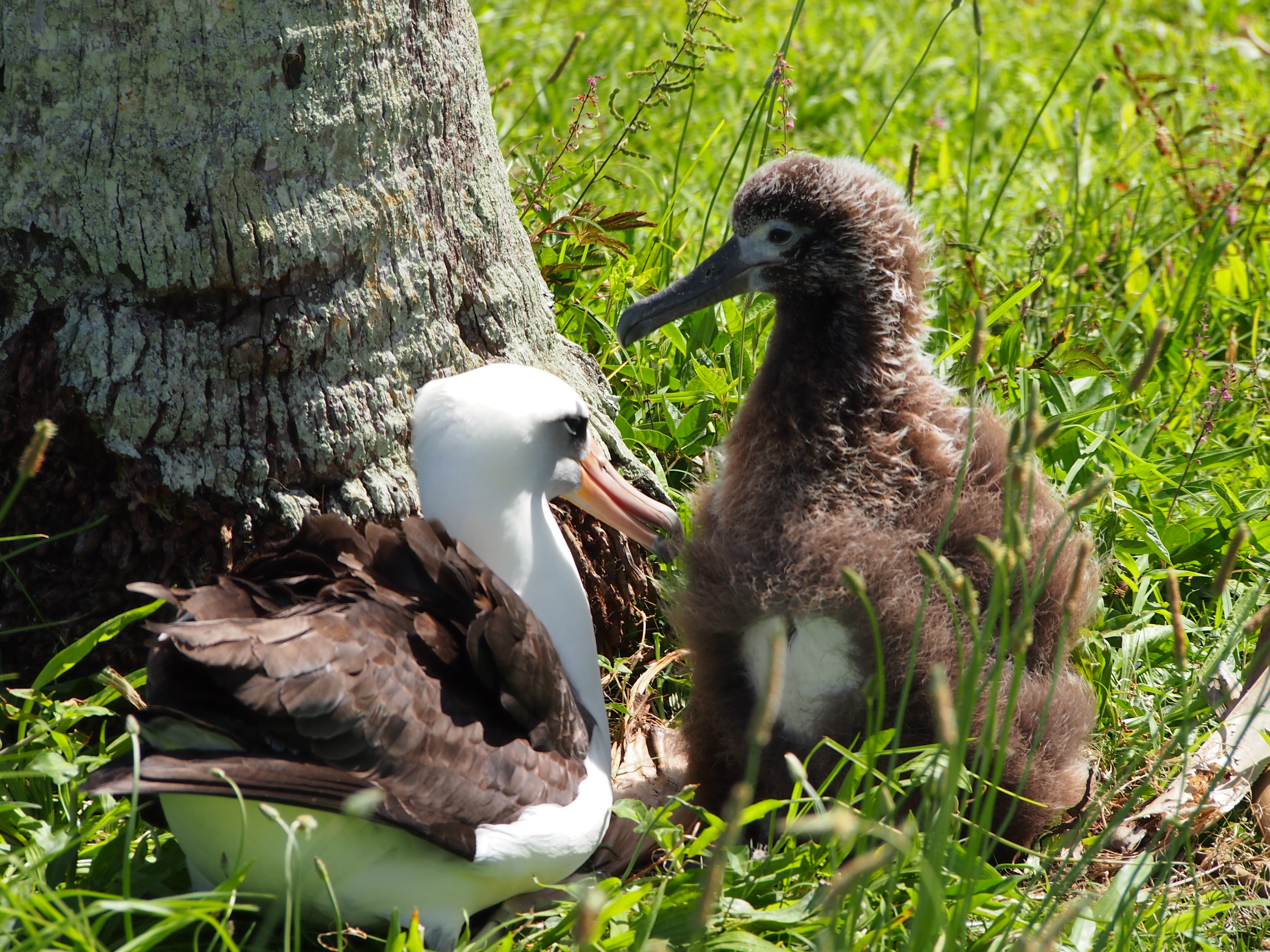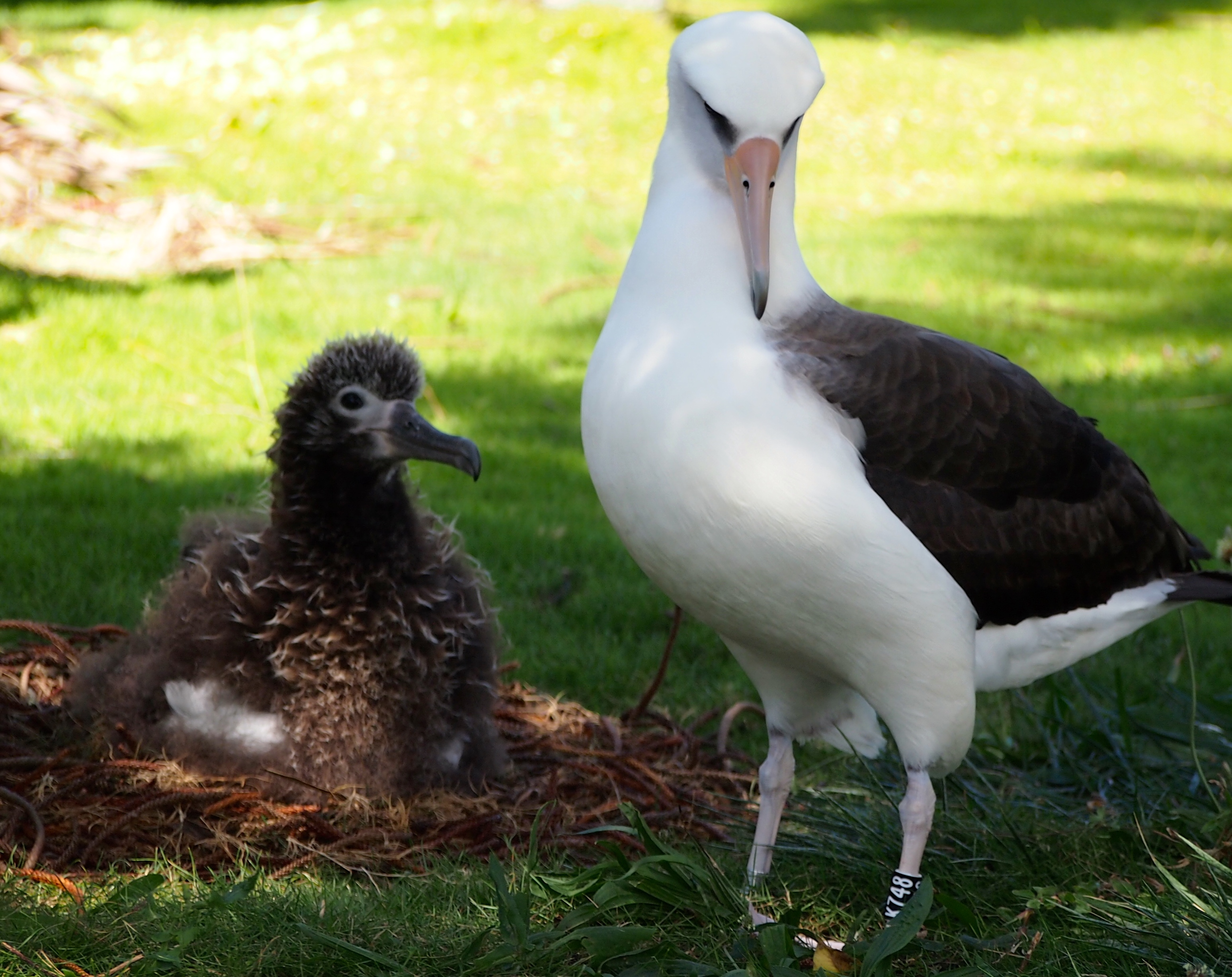 Sometimes it’s tough to be a chick, waiting patiently for Mom or Dad to fly home with a tasty meal, and having to put up with the unsolicited attention of those shiftless adult albatrosses pestering a poor little bird who just wants to nap, or work on his own little nest, or just contemplate.